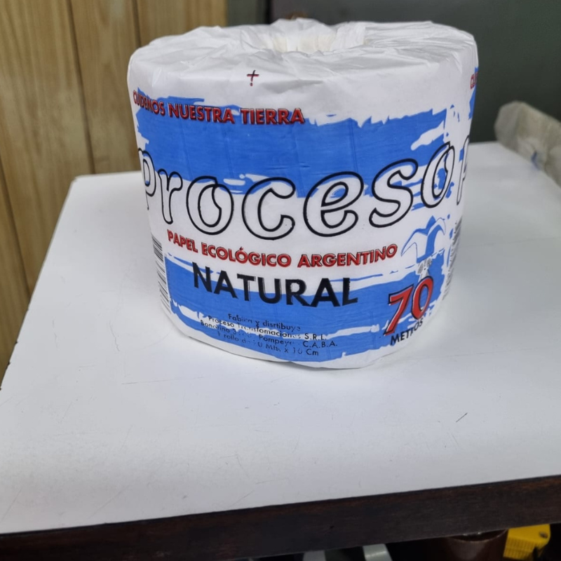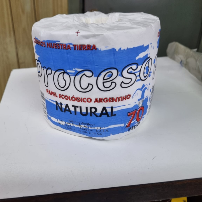 Papel Higiénico Marca Proceso Económico de 24 Unidades de 70 Metros Individual Natural realizado a partir de reciclaje enfocado a cuidar el ambiente.